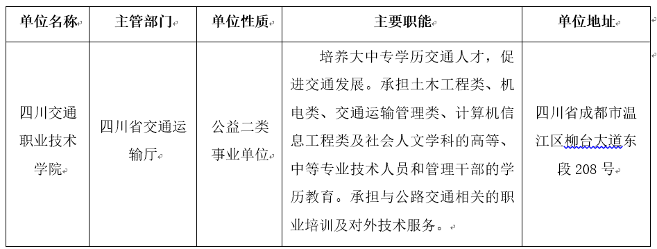 学院占地近800亩,全日制在校生15000余人。设有道路与桥梁工程系、汽车工程系、交通运输与经济管理系、轨道交通工程系、航运工程系、信息工程系、建筑工程系、机电工程系、艺术与设计系、公共课教学部和马克思主义学院、国际学院12个教学部门。学院与成都工业学院、成都师范学院联合开展本科层次人才培养,设有本科专业3个;开设三年制专科专业38个(含2个中美合作办学专业),其中中央财政支持建设的国家示范重点专业4个、国家级交通运输类示范专业点2个、省级重点专业9个。