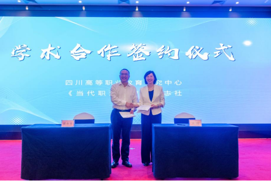 中心与《当代职业教育》杂志社签署了战略合作协议。蒋永林主任与四川开放大学校长、《当代职业教育》杂志社社长王玲代表双方签约。《当代职业教育》是我省知名的职业教育学术期刊,中心与《当代职业教育》杂志社的合作签约,将有力助推全省职业教育学术平台建设工作,促进职业教育科研工作再上新台阶。