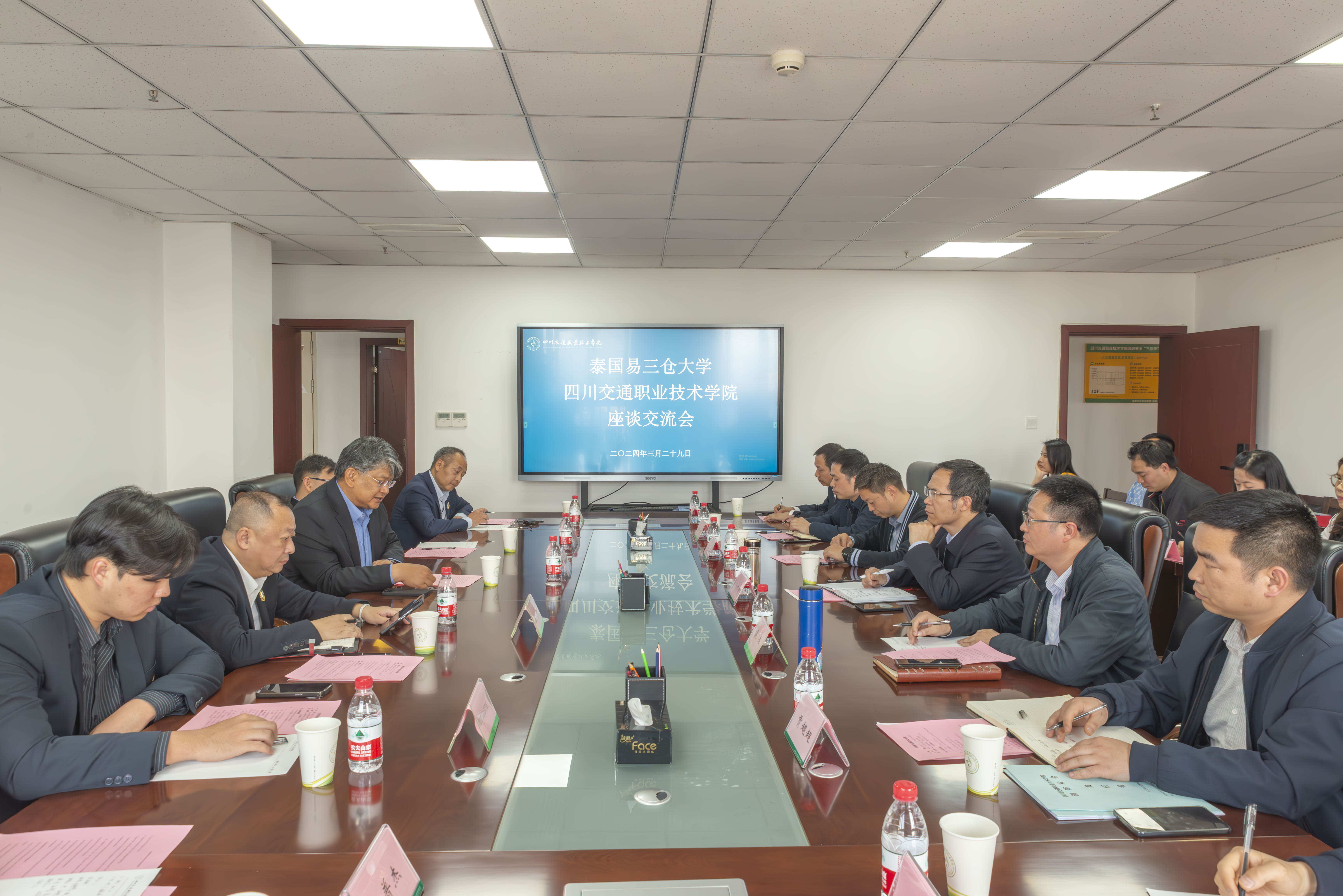 3月29日下午,泰国易三仓大学常务副校长Dr.Verayuth Boonpram一行7人到访学院,在明德楼1207会议室举行座谈交流会。学院党委书记冯书明,党委委员、副院长袁杰,国际学院、交通运输与经济管理系、汽车工程系、信息工程系、艺术与设计系等部门负责人参加会议。