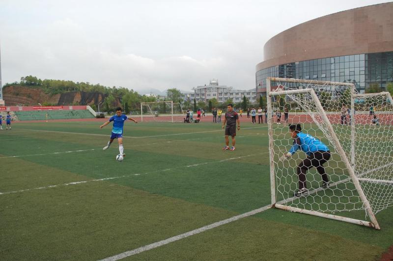 24日下午五点,地旅与数计两学院队伍早早来到赛场,为争夺冠军而做准备。地旅学院吴亚平书记也来到赛场,为队员们加油鼓劲。比赛开始,先由双方女队进行激烈的比拼,女子刚强坚韧的一面,在对足球的热忱中展现的淋漓尽致。20分钟过去了,女队双方握手言和,任由接下来到男队一展雄风。裁判哨响,两学院男队立刻展开了激烈角逐。不一会地旅的健儿以自身实力成功进球,拉拉队的欢呼声响彻整个球场,气氛变得紧张而热烈。比赛接近尾声,两队以1:1的局面进入到点球阶段。每一球都关乎成败,最后德赢官网健儿不负众望以5:3的点球斩获冠军,我们的喜悦不溢言表。