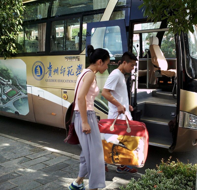 天下没有不散的宴席,悲欢离合此刻唯演绎,有悲有欢。但毕业并不意味着结束,也是他们人生的一个新起点。22日早8:40,志愿者集中于奋斗广场,在林华老师的带领下将欢送横幅“祝地旅学院学姐学长前程似锦”拉好,高举院旗、院牌为毕业生送行。学校里充满了厚重的行李箱与沥青路摩擦而发出的巨大声响,可是却没有人会烦于这种嘈杂,因为这是他们青春。志愿者们十分积极地参与此次活动,他们热心帮助学姐学长提行李,并告诉他们到贵阳北站、金阳客站、火车站等地的校车是哪一辆,将行李安置好后送他们乘上校车。欢送一直持续到23日下午,校园是我们共同的家园,我们只希望离别的学长学姐在真情回应中感知温暖,找到支撑梦想远航的力量。