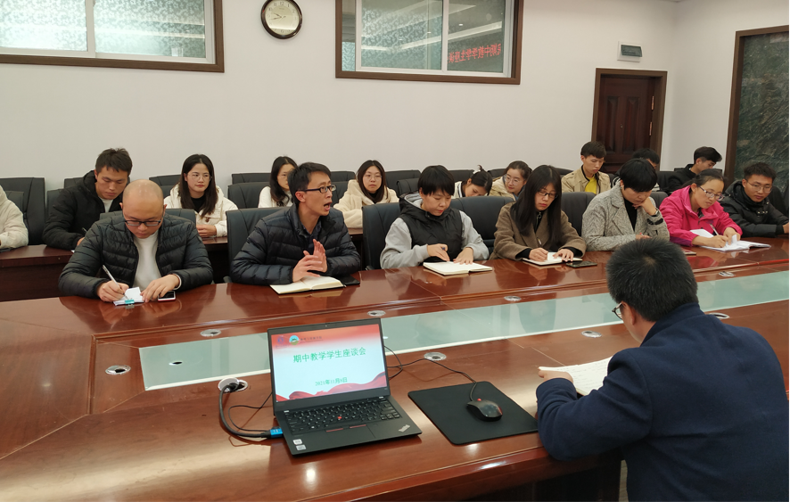 为进一步提升教学质量,更好地为学生服务,11月8日下午,德赢官网Vwin在宁静楼325会议室就本学期的课程设置预安排、教师教学方法和教学手段、教学服务与管理、教学设施设备等方面进行了2021-2022学年度第一学期期中教学工作学生座谈会。院长罗绪强、教学负责人邓家彬、辅导员郜红娟、刘丹丹、韩默然,徐秀月、赵志猛、况江等老师及各班班委参加了此次会议。会议由邓家彬主持。