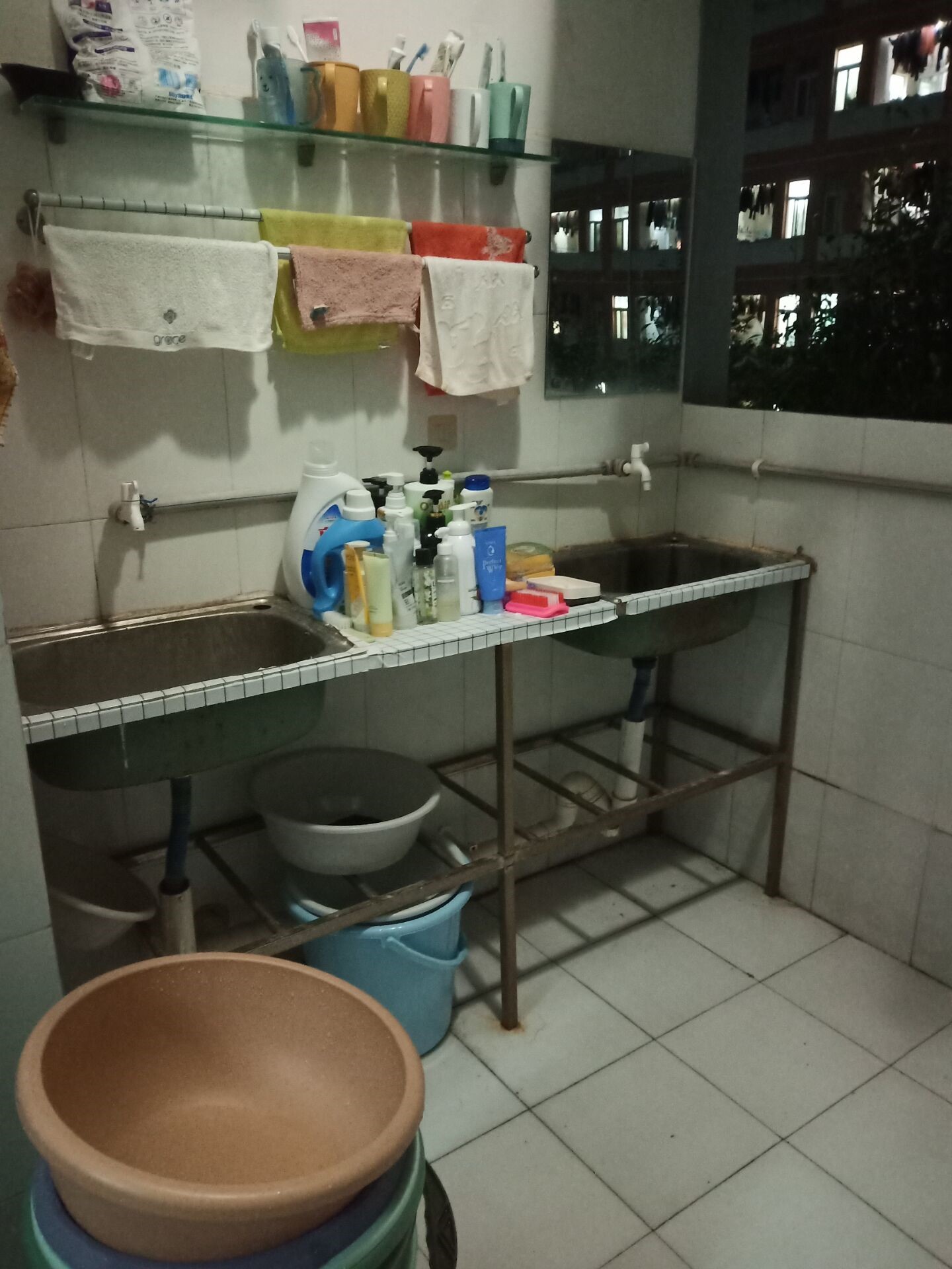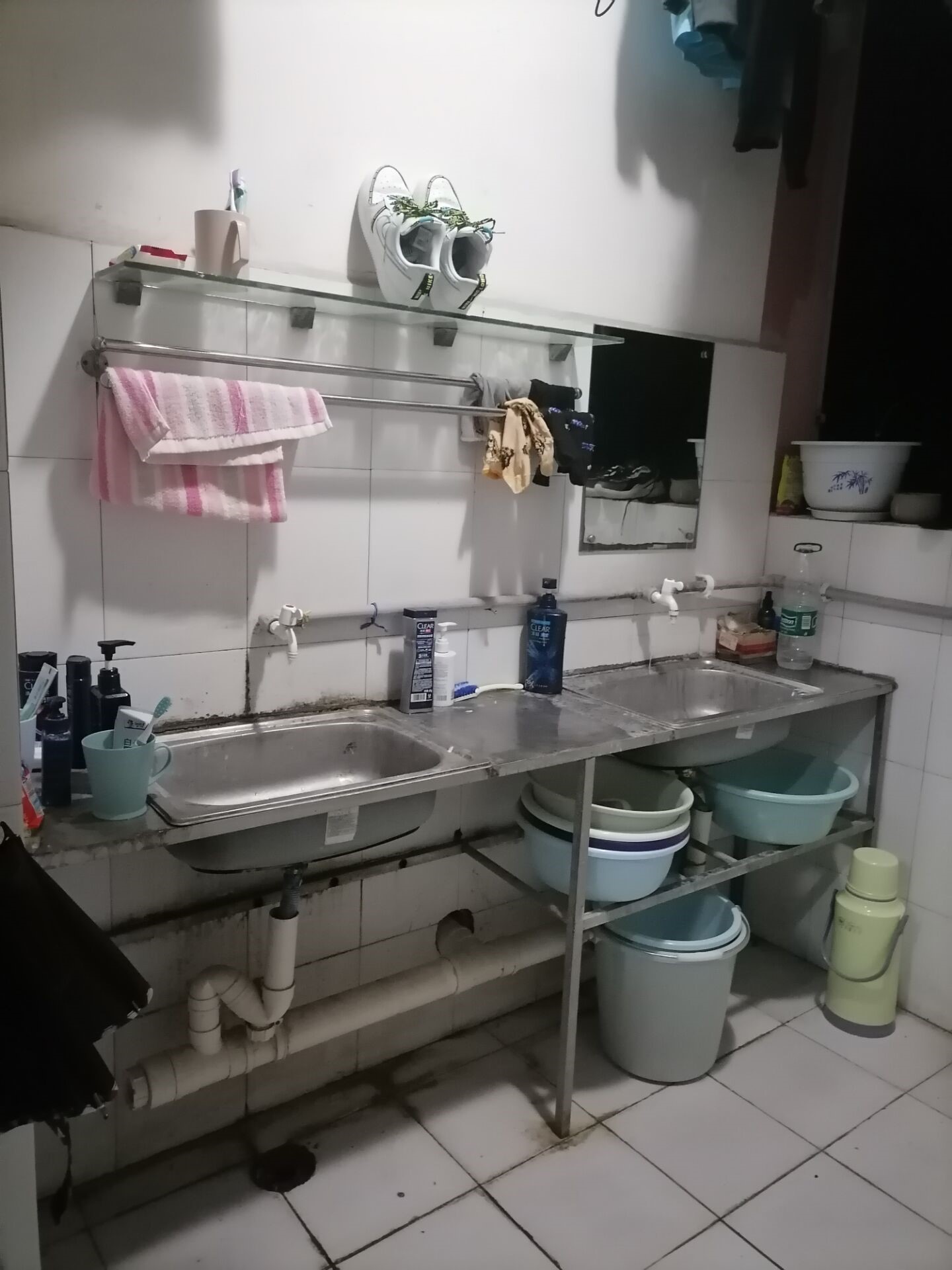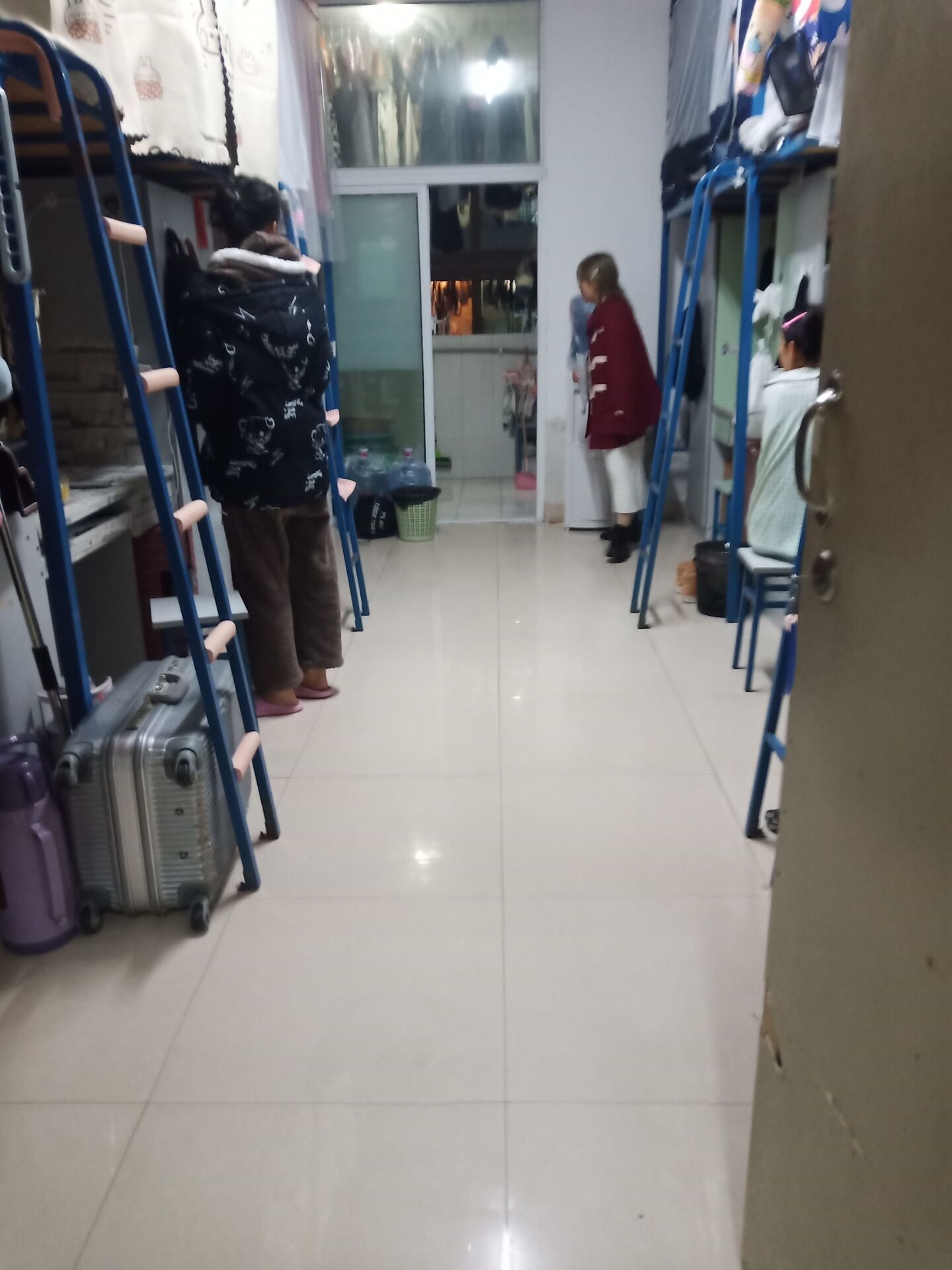 整齐摆放的洗簌用品让人赏心悦目,地板也十分干净,想必生活在这样的寝室一定是幸福感爆棚的,大一的她们能够兼顾生活与学习,值得我们所有人学习。