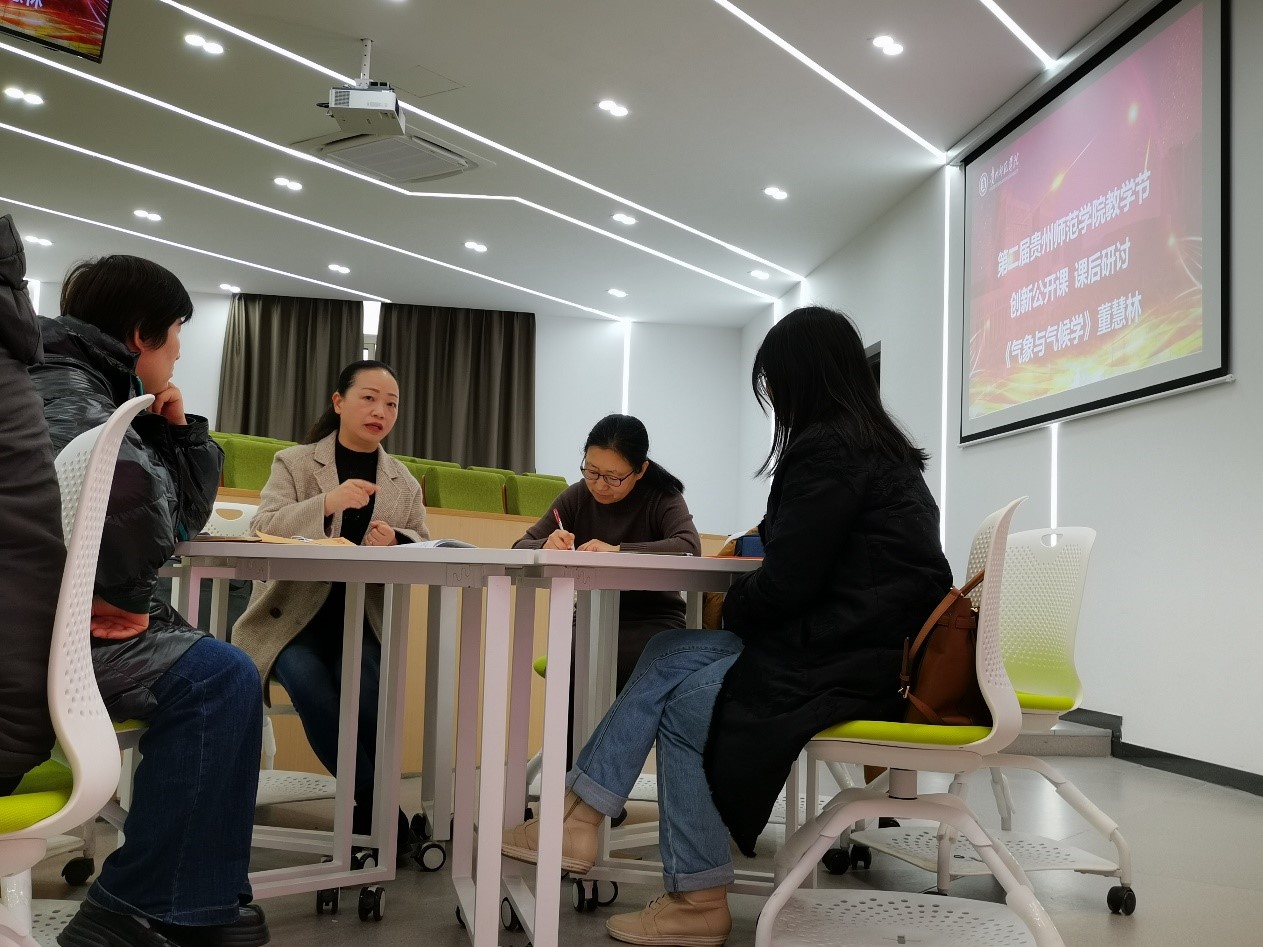 课后,邓琴处长一起参加了地资学院公开课评课讨论会,进行了教学交流,提出了注重加强课程设计,课下布置任务,课上学生更多参与等中肯的建议。地资学院的督导及老师们对本次课的优点与不足给予了详细的点评,肯定了利用学科发展中相关知识点的历史材料激发学生的兴趣,指出需要更进一步深化挖掘。