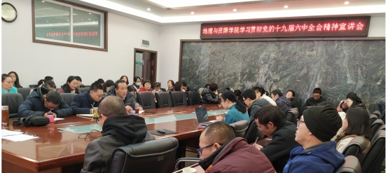 12月23日,德赢官网Vwin在学院会议室开展了学习贯彻党的十九届六中全会精神宣讲,宣讲人为学院党总支书记吴亚平。宣讲会议由党总支副书记、院长罗绪强主持,全体教师参加宣讲活动。