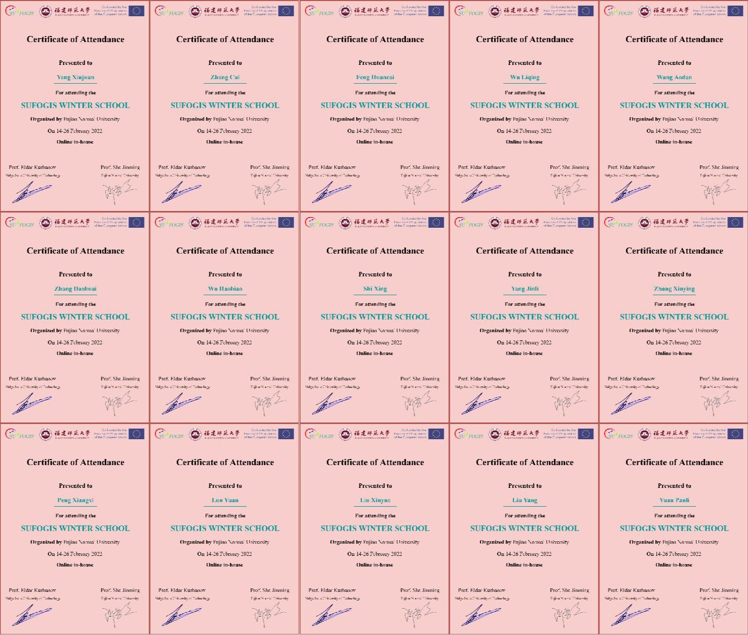 为了提高国际交流合作水平,2022年2月14-日26日(北京时间),贵州山地研究院罗光杰教授、贵州省流域地理国情监测重点实验室吴洋洋、樊瑞雪副教授等带领德赢官网Vwin20余名同学参加了由福建师范大学承办的欧盟合作项目GIS And Remote Sensing For Sustainable Forestry And Ecology(SUFOGIS)冬季学校,限于疫情防控需要,本次冬季培训采用线上会议方式开展。参加此次会议的有中国、俄罗斯、欧盟等国内外专家学者与高校学生。本次活动得到欧盟ERAMUS+ SUFOGIS项目(598838-EPP-1-2018-EL-EPPKA2-CBHE-JP)的资助。