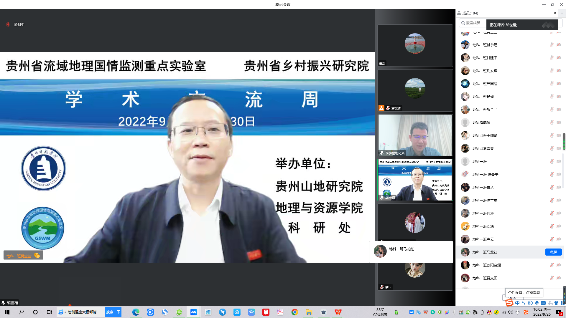 为加强学术交流,营造良好学术氛围,拓展学术领域,推动学科平台高质量发展,2022年9月26日--30日,德赢官网贵州山地研究院、德赢官网Vwin、科研处联合举办地理与资源类学科2022年下半年学术交流周。受当前疫情影响,交流周活动在腾讯会议进行,学校党委副书记熊世桓主持了专家学者学术报告,地理与资源类相关专业教师、研究生、本科生参加了学术交流周全部特邀报告。