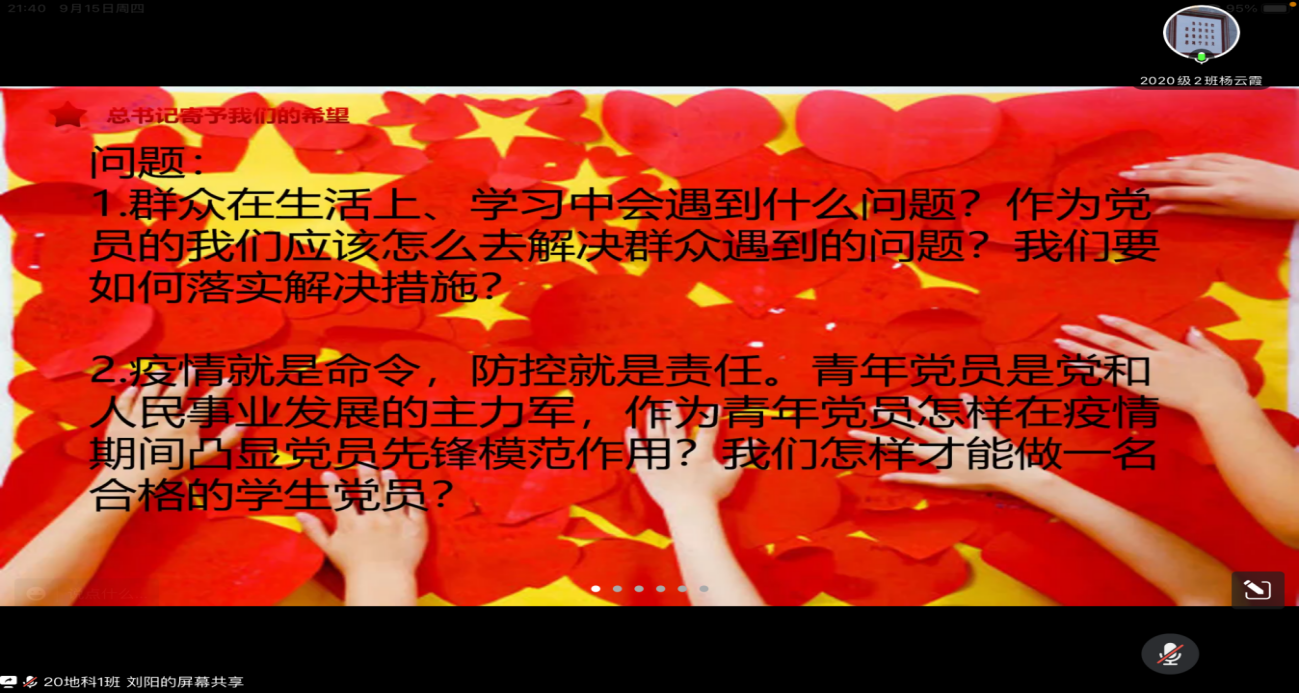 2022年9月18日,德赢官网Vwin地理科学类学生党支部全体成员在线上开展了“喜迎二十大,我为群众干实事”——德赢官网Vwin地理科学类学生党支部党日活动。