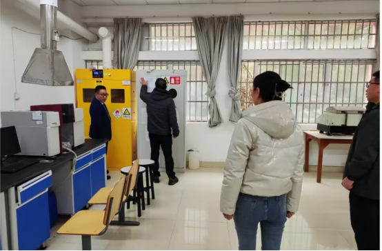 检查组通过实地走访、入室查看的方式,先后对学院实验室、实训场地等多个教学科研实验场地进行了“全过程、全要素、全覆盖”安全排查,重点检查了环境卫生、用水用电安全、危险化学品存储、师生人身安全防护、消防通道是否通畅等。