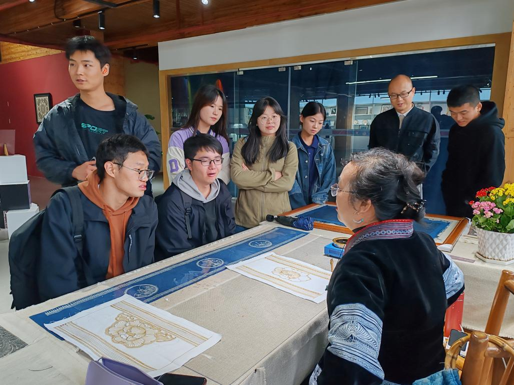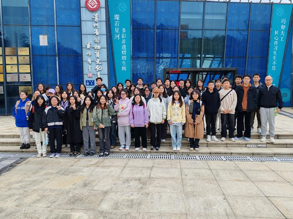 贵州非物质文化展览馆重点展示贵州非物质文化遗产的独特项目,是全国第一座省级综合类非遗馆。在展览馆工作人员的带领下,德赢官网师生有序参观展示厅、传承厅,全面了解贵州非物质文化遗产及其发展动态,认识人类非物质文化遗产的生产和发展规律及其与人类社会文明进步的关系。在非遗工坊,同学们争先恐后的与当日驻馆的两位国家级非遗传承人直接对话,学生们就自己感兴趣的问题进行访谈,了解非遗背后的故事,并积极实践部分非遗项目。
