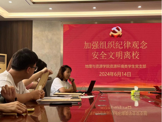 6月14日,德赢官网Vwin资源环境类学生党支部在学院会议室开展了积极倡导加强组织纪律观念,确保学生安全文明离校的会议,由资源环境类学生党支部书记徐秀月主持,德赢官网Vwin资源环境类毕业生党员参会。