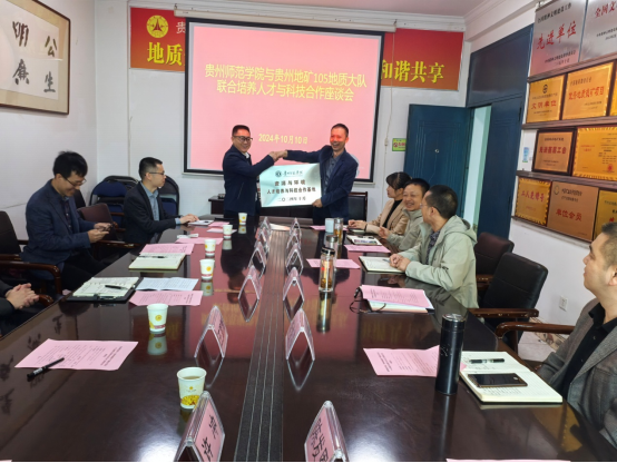 罗绪强指出双方前期具有良好的合作基础,今后可以依托双方优势平台和人才资源,继续在人才培养、项目申报、平台(基地)共建和党建引领方面开展更加广泛的合作,争取在未来获得更加丰硕的成果,更好服务地方经济社会高质量发展。同时,罗绪强代表德赢官网Vwin向105地质大队授牌“资源与环境人才培养与科技合作基地”。这标志着德赢官网Vwin与贵州省地矿局105地质大队在资源与环境人才培养与科技合作方面进入了新的发展阶段。