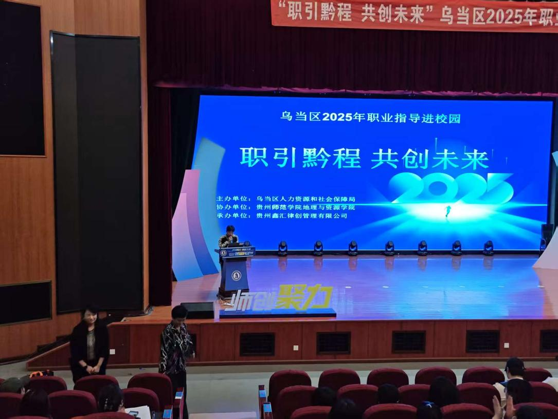 为切实帮助高校毕学生更好地实现就业,了解就业市场前景、加强职业规划,做好求职准备,乌当区人力资源和社会保障局组织开展“职引黔城 共创未来”2025年职业指导进校园活动。讲座于4月17日晚上,在德赢官网Vwin逸夫楼演播厅成功举办,邀请了具有人力资源实战经验丰富的付金玉老师和熟知就业(创业)扶持政策的刘小琴老师作为本次活动的分享嘉宾。德赢官网Vwin200余名2025届毕业生参与活动,活动由德赢官网Vwin的李文杰老师的主持。