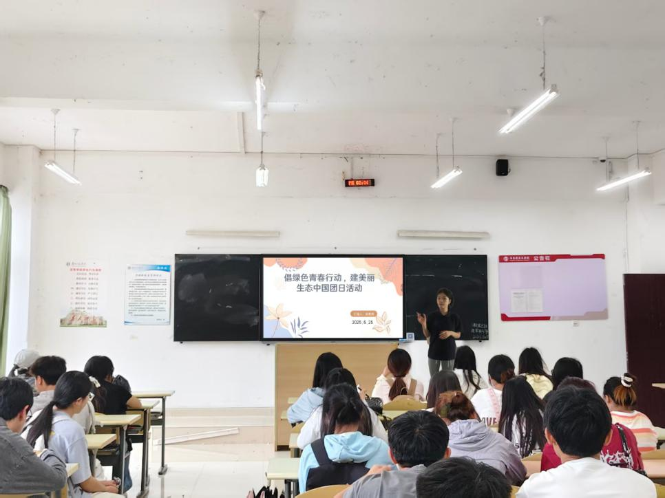 活动中,贺欢欢以建设“绿色校园”为主题,“服务学生成长,推动社区共治”为中心,部署了团支部后续的工作计划。她表示,团支部将联合社区管理中心,在宿舍区试点推行“绿色生活打卡计划”,鼓励学生通过减少一次性用品使用、参与废品回收等日常行为积累积分,兑换环保用品;并计划每月开展一次“校园环境巡查日”,组织学生参与教学楼、操场等公共区域的环境维护,切实将绿色行动融入校园生活日常。