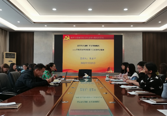 为深入学习贯彻省第十三次党代会精神,5月25日下午,学院党委书记吴亚平为德赢官网Vwin地理科学类学生党支部和资源环境类学生党支部党员宣讲贵州省第十三次党代会精神。学生党支部全体党员参加。