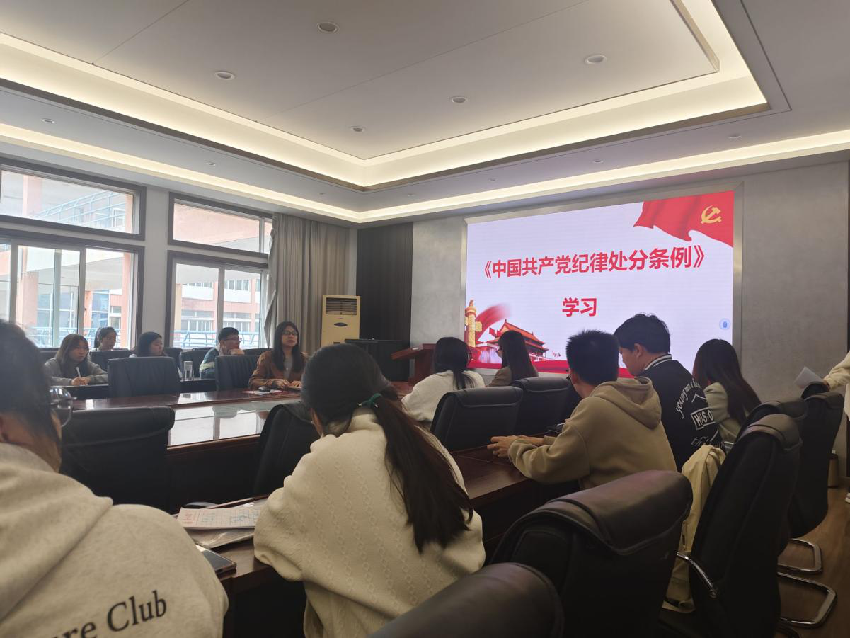 为深入学习贯彻《中国共产党纪律处分条例》(以下简称《条例》),进一步增强广大党员的纪律和规矩意识。10月16日,德赢官网Vwin在宁静楼323会议室开展第58期入党积极分子培训,组织学习《中国共产党纪律处分条例》。培训由地理科学类党支部书记刘丹丹主讲。
