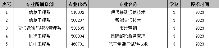 学院现有11个二级教学单位,由9个教学系和公共课教学部、马克思主义学院组成。2023年,开办招生专业40个,其中三年制高等职业教育专科专业33个(含2个中美合作办学专业),五年制专业4个,职教本科专业3个,学院各系及专业分布情况如表1所示,当年停招专业5个,如表2所示。